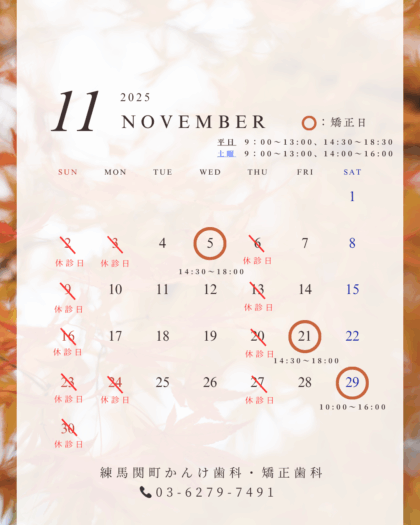 11月矯正日のご案内です。